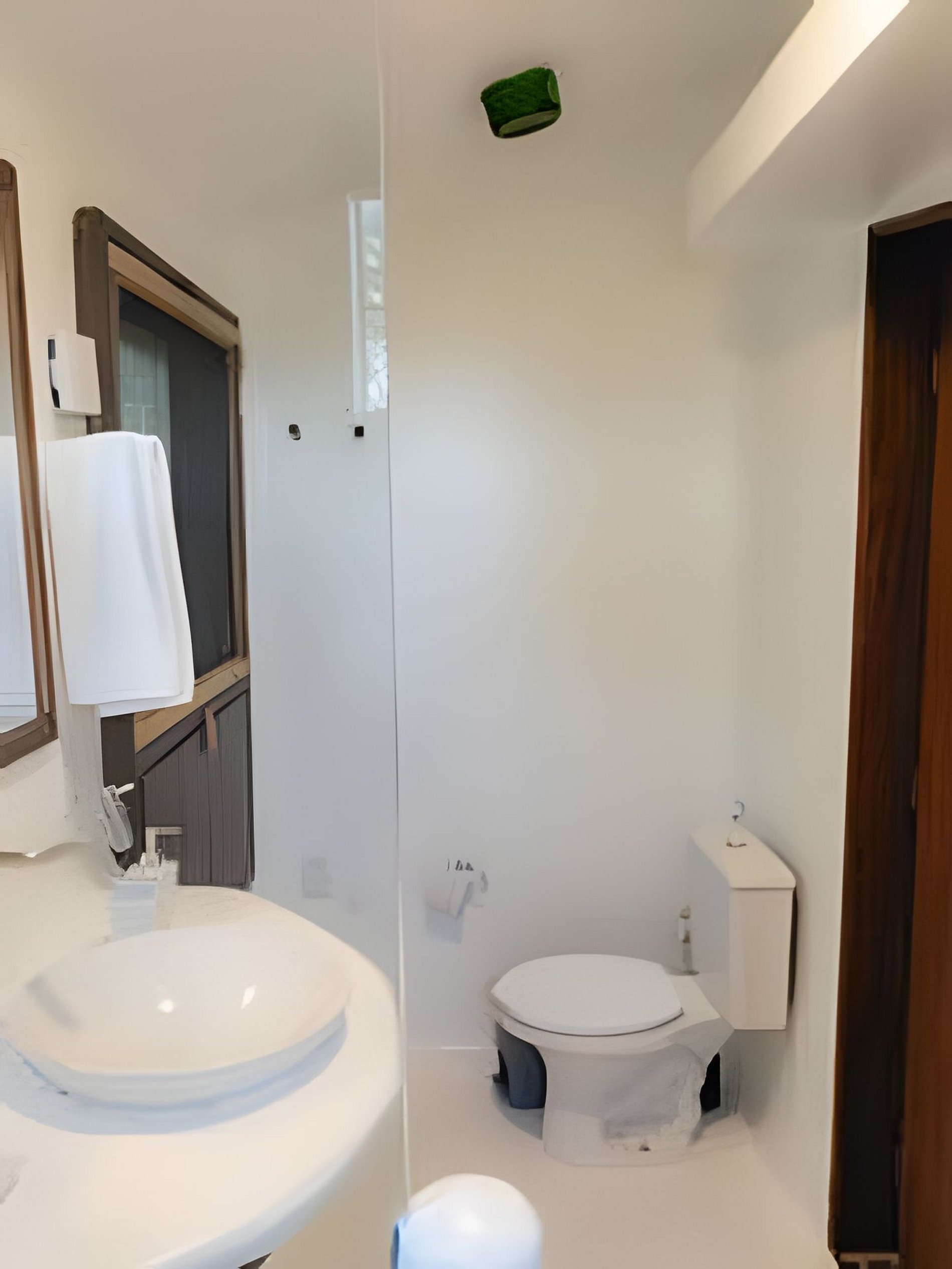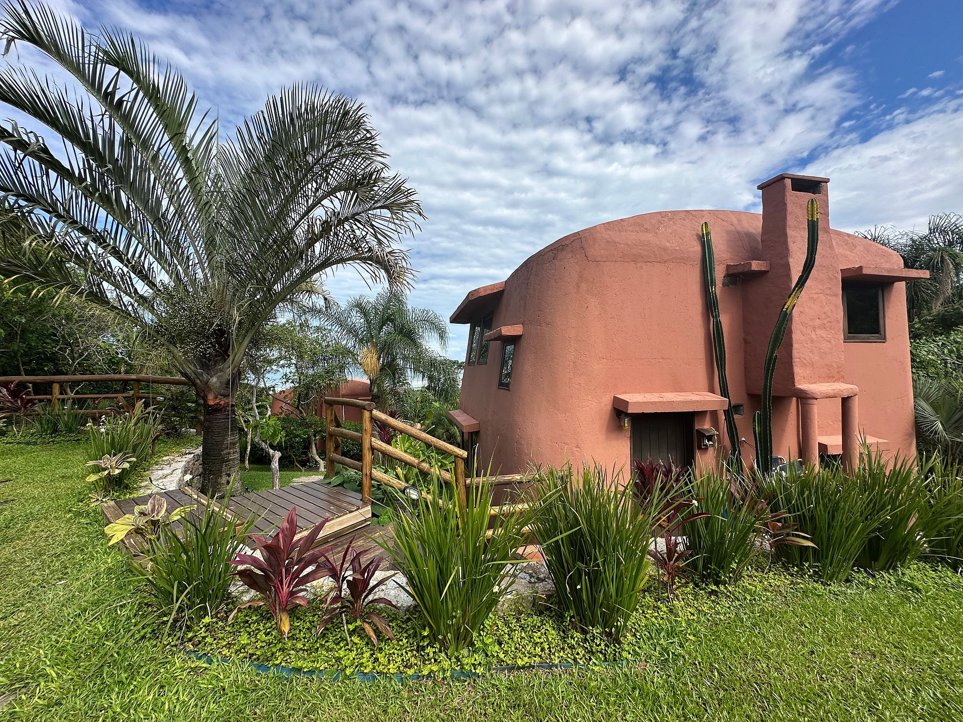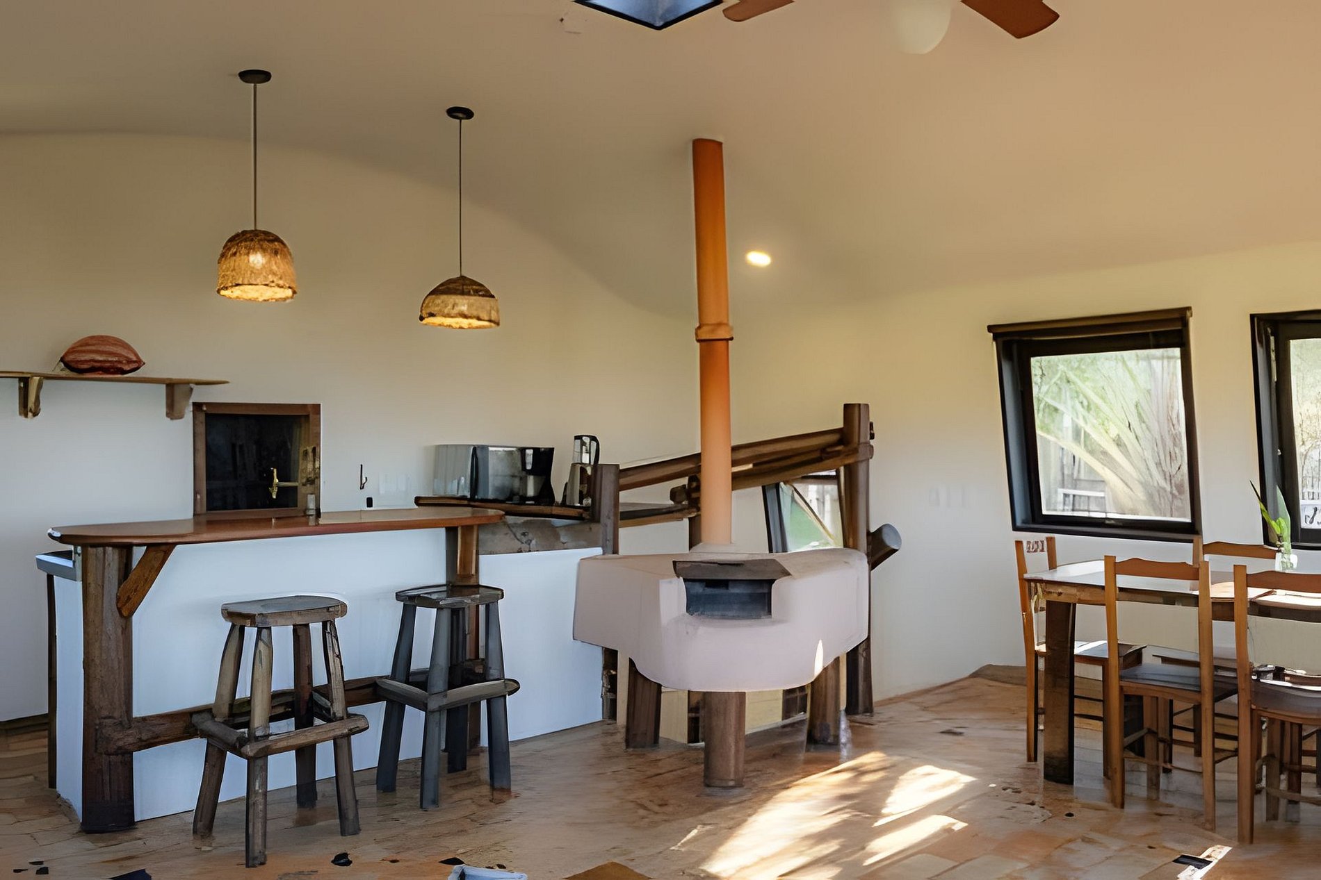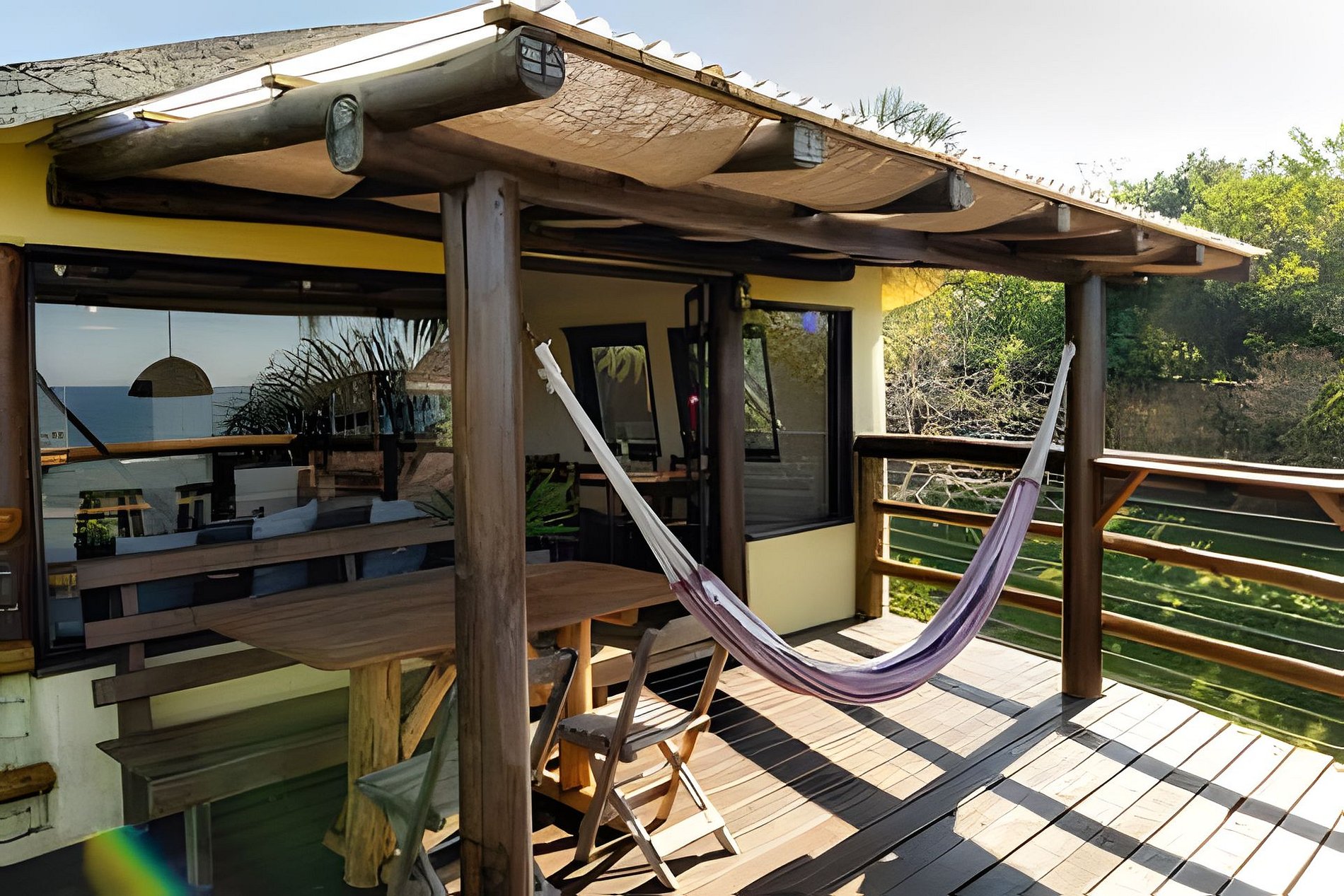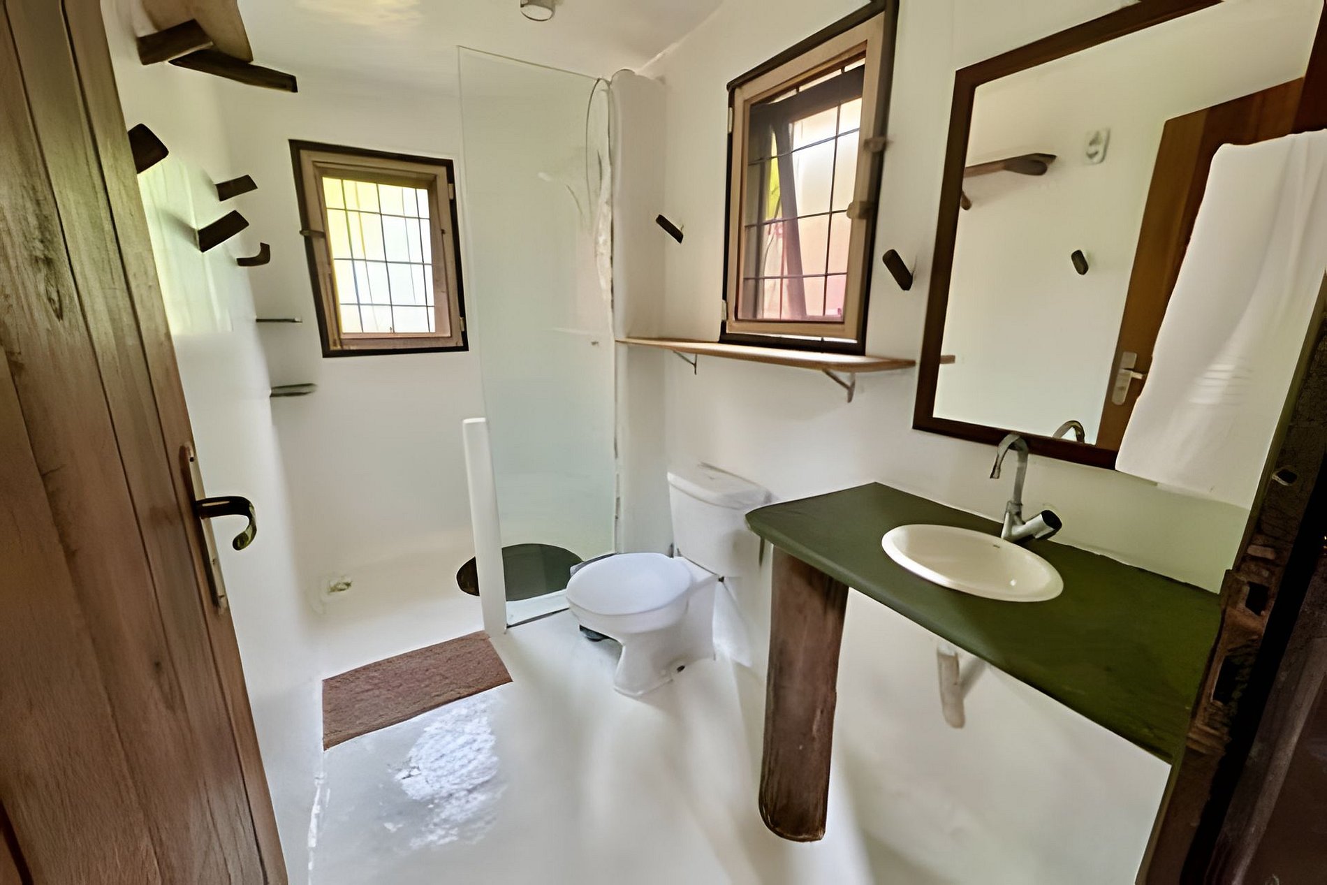 Seiva da Lagoa 2 – Ecological refuge 75 meters from the beach and 500 meters from the village center. Sustainable house on a 3000 m² plot, surrounded by nature, with views of the sea and the Lagoa do Meio. Accommodates up to 6 people with 2 bedrooms and 2 bathrooms, fully equipped kitchen, spacious deck with a barbecue, high-speed Wi-Fi, and air conditioning. The property has two identical houses, rented individually. Enjoy an exclusive and peaceful environment with direct access to the lagoon. Seiva da Lagoa 2 – Eco House at Praia do Rosa Prime location: Just 75 meters from the beach and 500 meters from the village center, Seiva da Lagoa offers a unique experience in contact with nature, with breathtaking views of the sea and the Lagoa do Meio. House layout: Lower floor: - Master suite with a queen bed, air conditioning, safe, and private bathroom. - Second bedroom with 4 single beds (2 bunk beds) and air conditioning. - Additional bathroom. Upper floor: - Fully equipped kitchen with indoor barbecue. - Integrated living room. - Large deck with outdoor barbecue and sea views. Amenities and services: - High-speed Wi-Fi (500MB). - High-quality bed linens and towels. - Air conditioning in all bedrooms. - Parking for 1 car per house, sun umbrella and 4 beach chairs. Exclusive access to Lagoa do Meio, perfect for enjoying the tranquility and natural beauty of the area. Seiva da Lagoa offers easy, direct beach access via a trail that goes around the Lagoa do Meio, providing a peaceful walk surrounded by nature. The trail leads to the beach in just 3 minutes, with beautiful scenery along the way. To reach the village center or the house, you need to go down and up a hill on a cobblestone street, typical of the region. The street is rustic and narrow, like most in Praia do Rosa, and the walk to the center takes about 10 minutes. In the village center, you will find bars, restaurants, and markets, making the house’s location excellent for those who want to enjoy the area without needing to use a car during their stay. We are always available for guests to ensure your stay is as comfortable and pleasant as possible. Interaction can be in person or by messages throughout your stay. Our goal is to offer assistance whenever needed and make sure every guest enjoys their experience at Seiva da Lagoa to the fullest, with total privacy and tranquility, surrounded by nature.