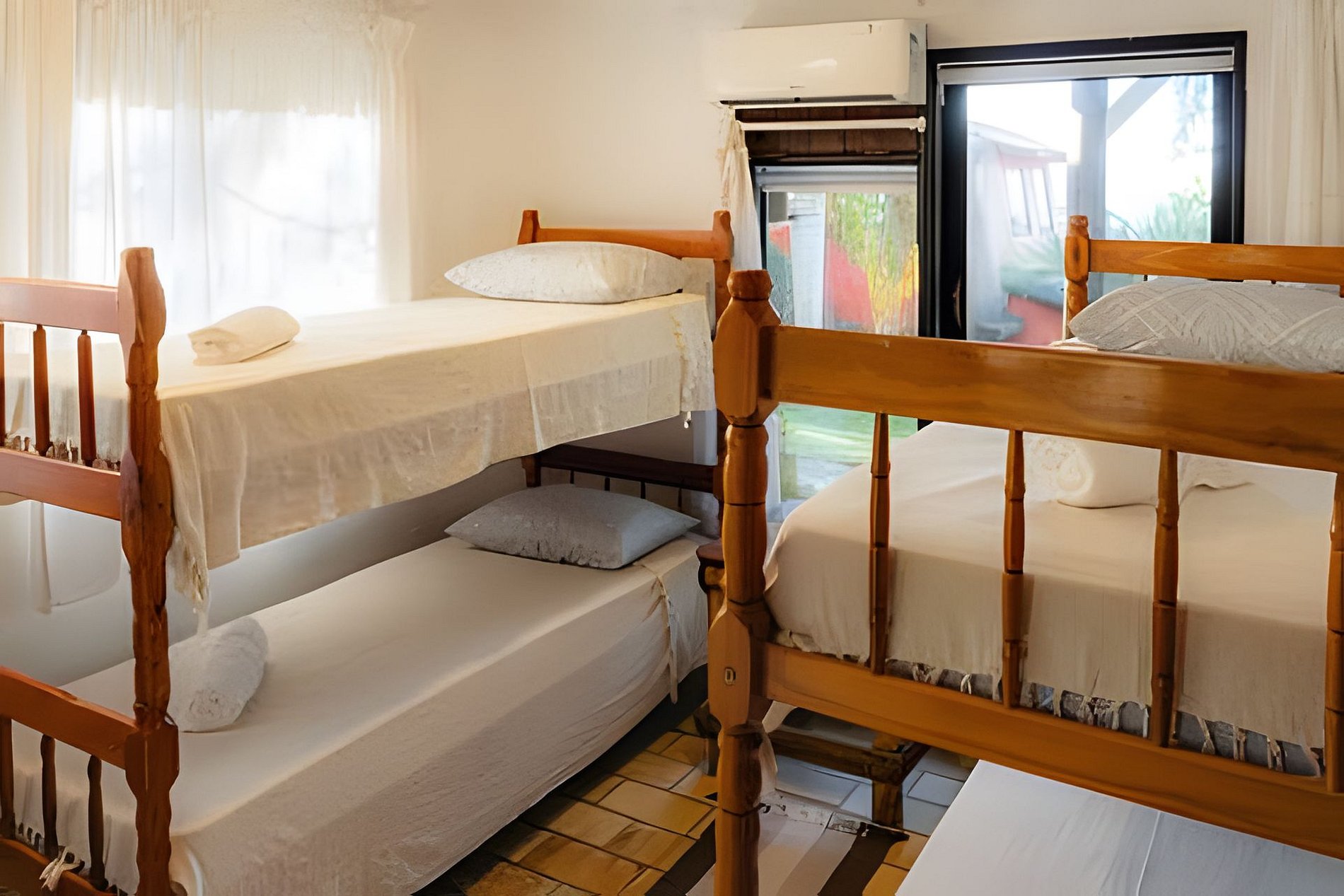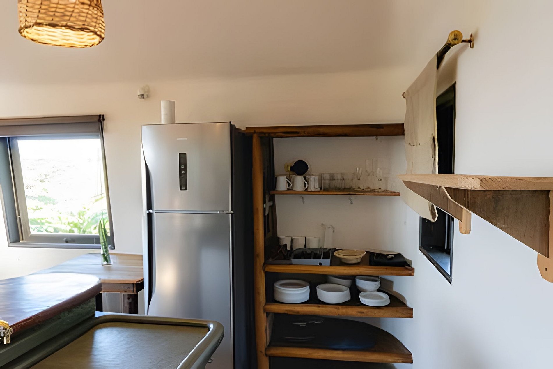 Seiva da Lagoa 2 – Eco House at Praia do Rosa Privileged location: Just 75 meters from the beach and 500 meters from the town center, Seiva da Lagoa offers a unique experience in touch with nature, featuring stunning views of the sea and Lagoa do Meio. House layout: Ground floor: - Master suite with queen bed, air conditioning, safe, and private bathroom. - Second bedroom with 4 single beds (2 bunk beds) and air conditioning. - Additional bathroom. Upper floor: - Fully equipped kitchen with indoor barbecue. - Open concept living room. - Spacious deck with outdoor barbecue and sea view. Amenities and Services: - High-speed Wi-Fi (500MB) - Premium bed linen and towels. - Air conditioning in all bedrooms. - Parking for 1 car per house. - Beach umbrella and 4 beach chairs. Exclusive access to Lagoa do Meio, ideal to enjoy the tranquility and natural beauty of the area.