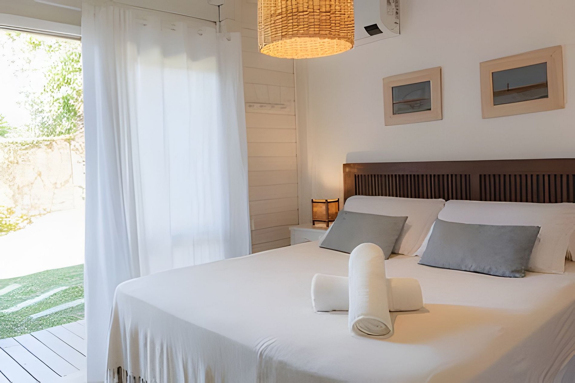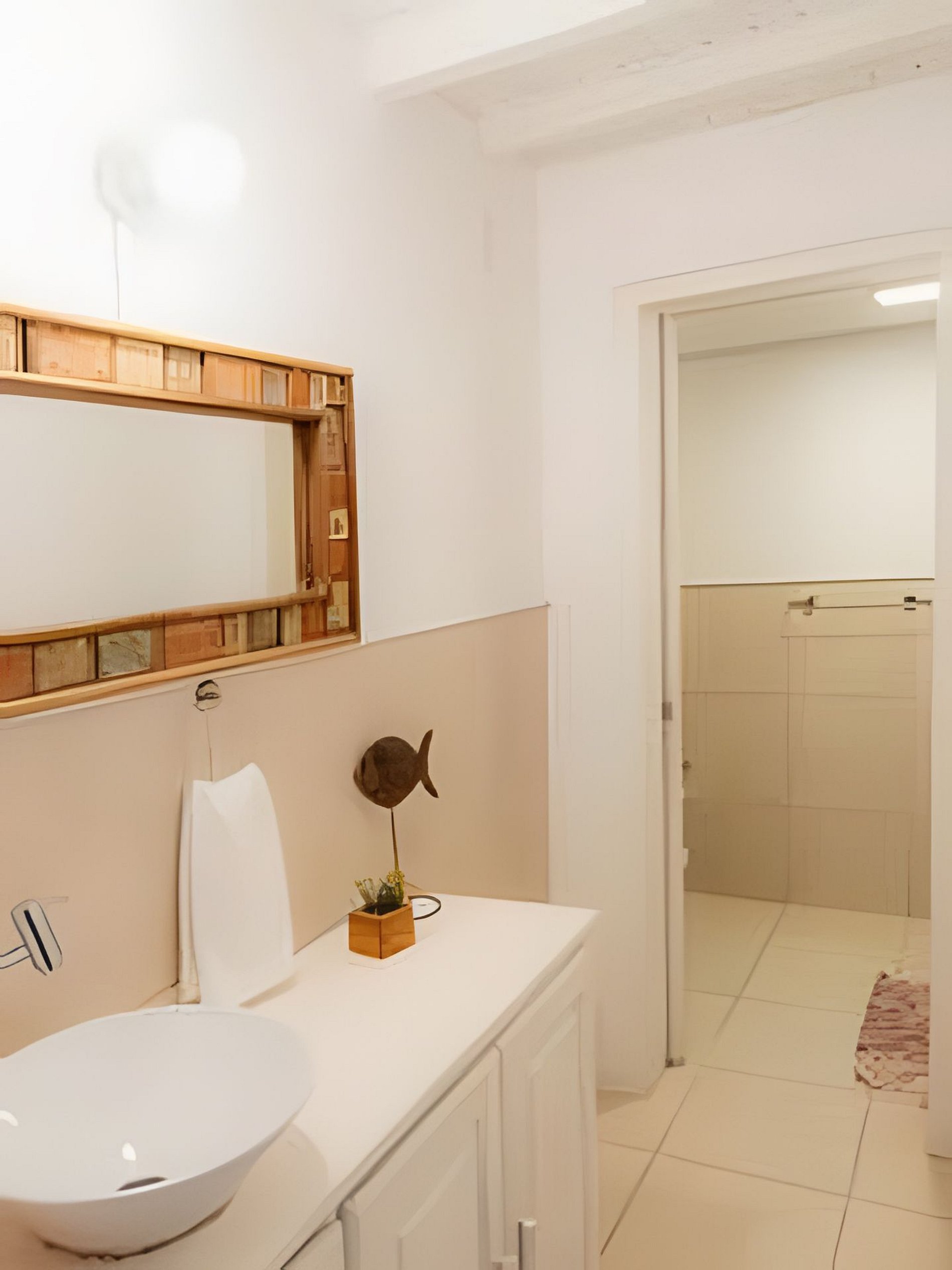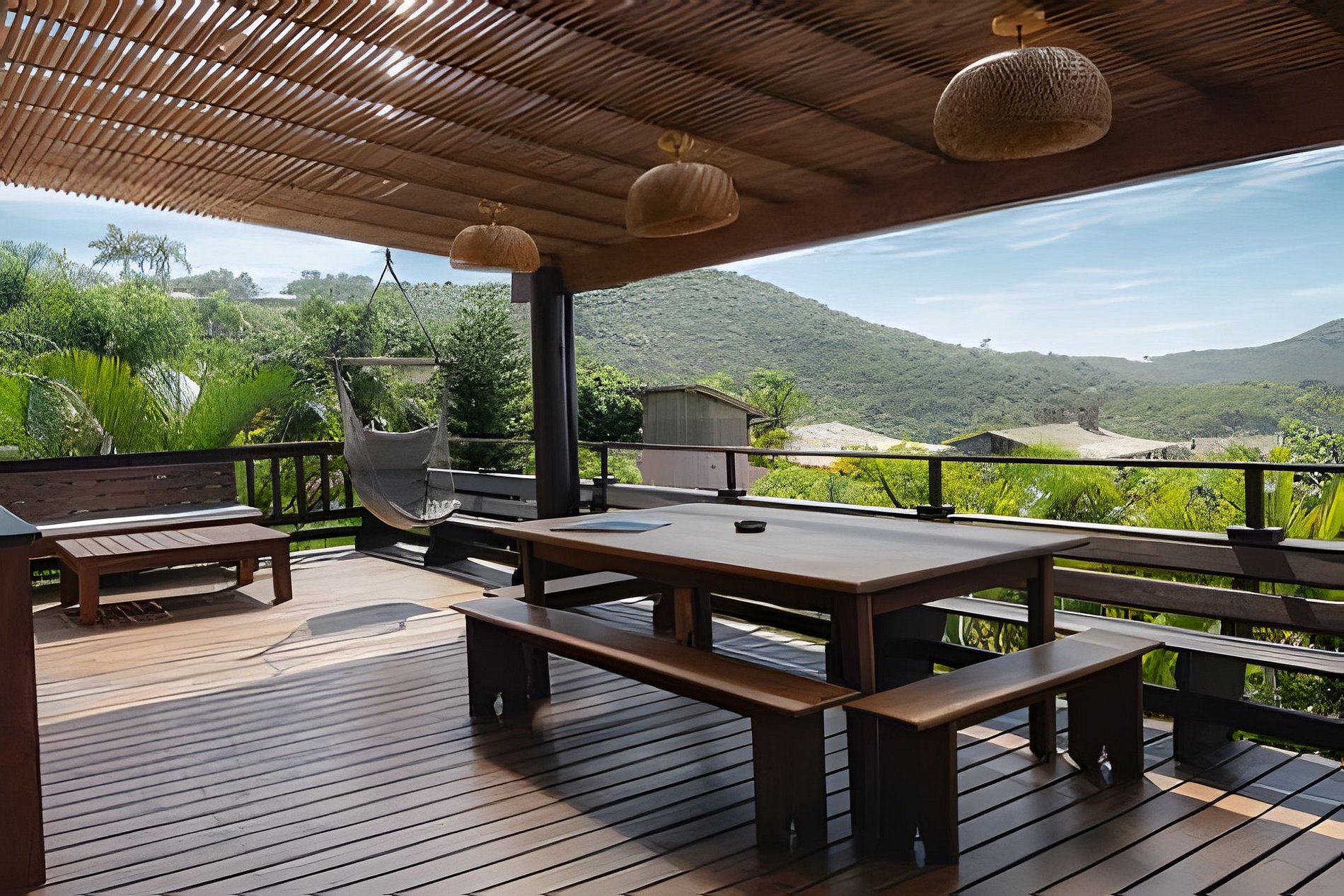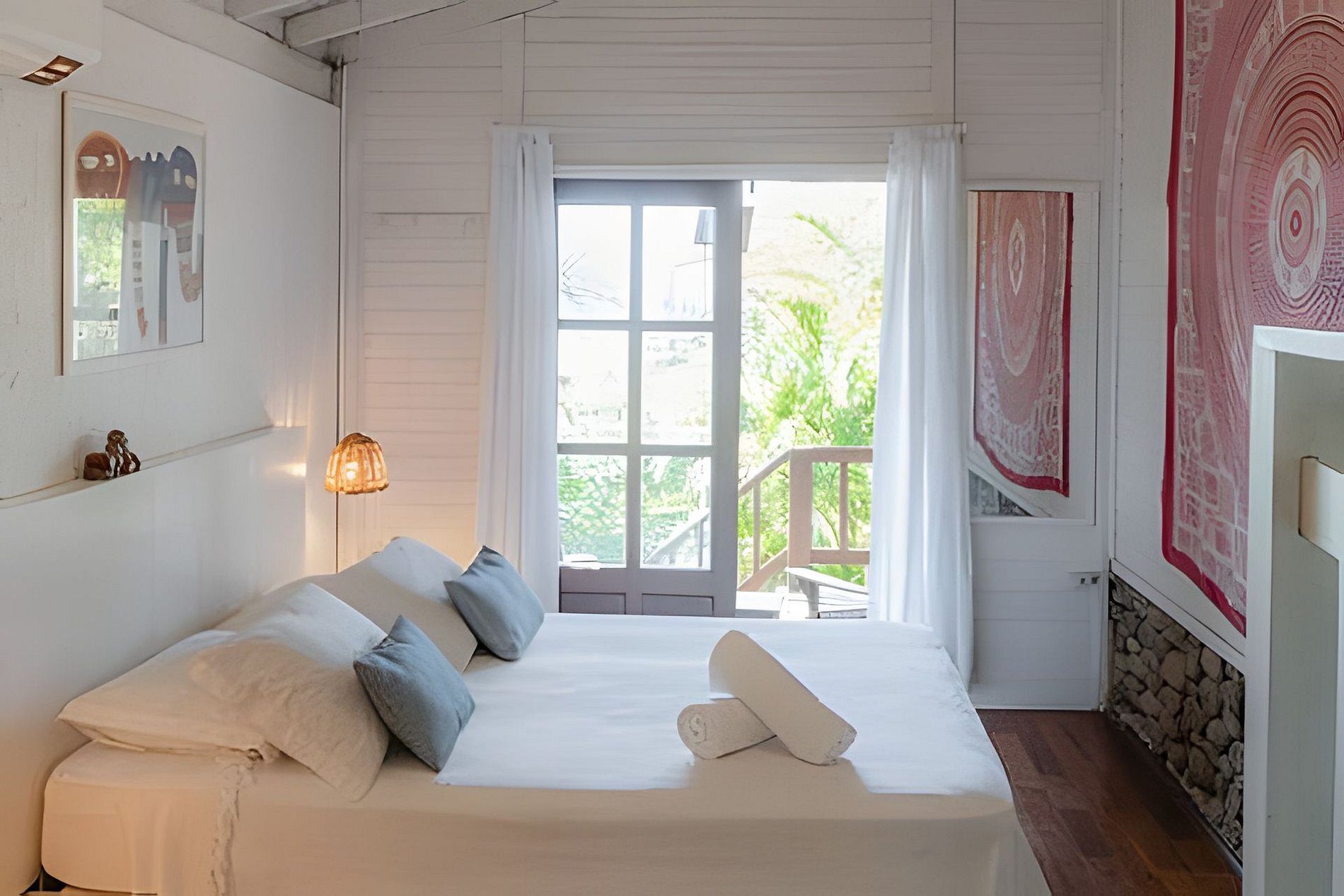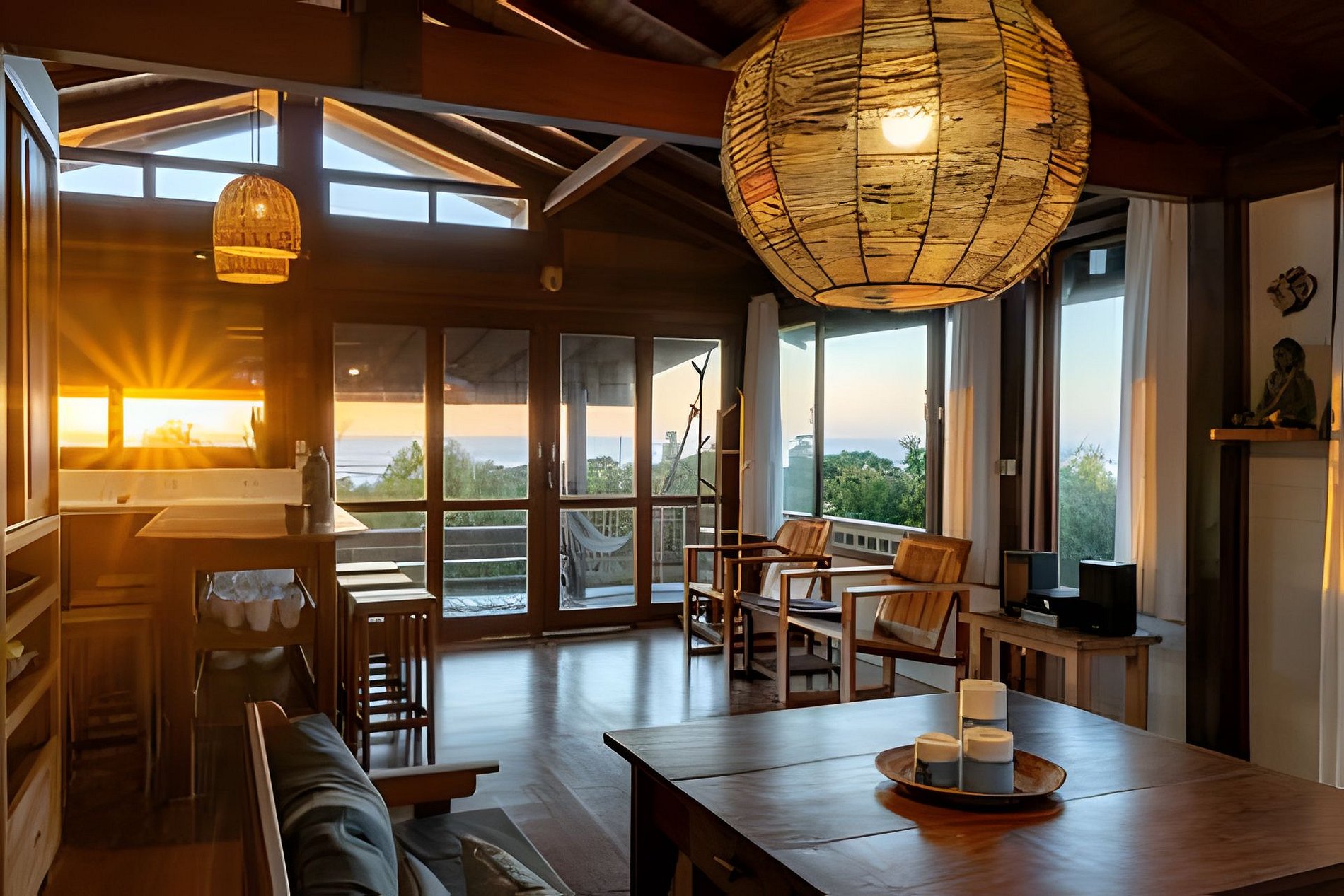 Buda da Lagoa offers easy and direct access to the beach through a trail that goes around Lagoa do Meio, providing a peaceful walk surrounded by nature. The trail leads to the beach in just 3 minutes, with beautiful scenery along the way. To reach the downtown area of Praia do Rosa or the house, you need to go down and up a hill on a stone-paved road, which is typical of the region. This road is rustic and narrow, just like the others in the area, and the walk to the downtown area takes about 10 minutes. In the downtown area, you will find bars, restaurants, and markets, making the location of the house ideal for those who want to enjoy the region without needing to use a car during their stay.