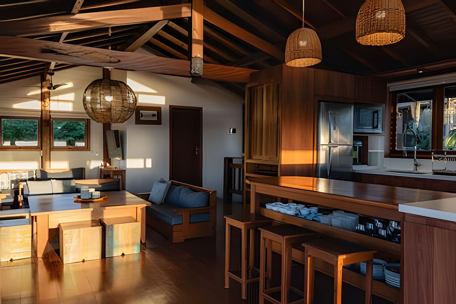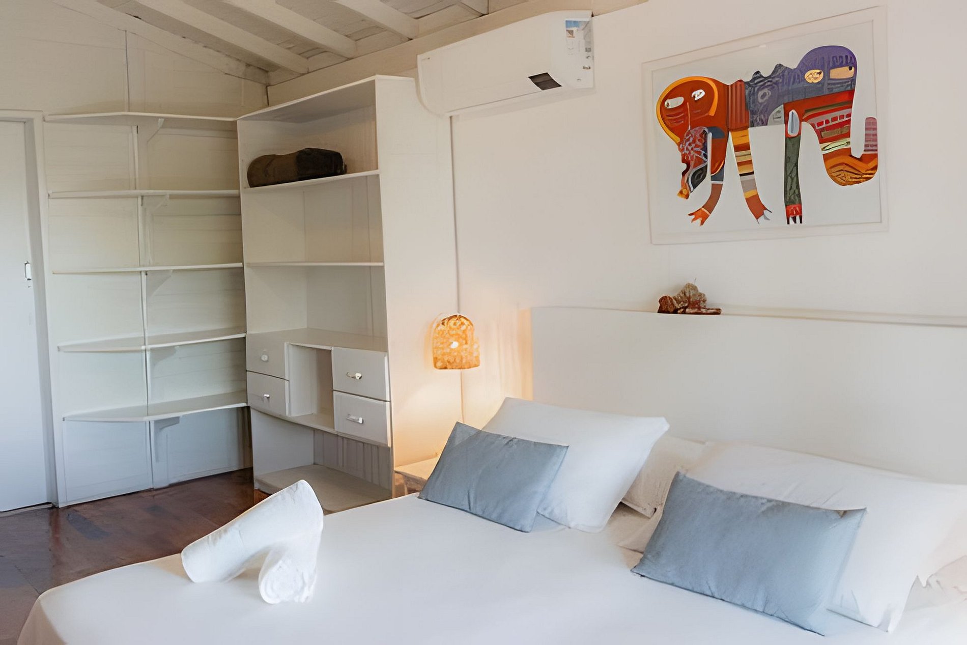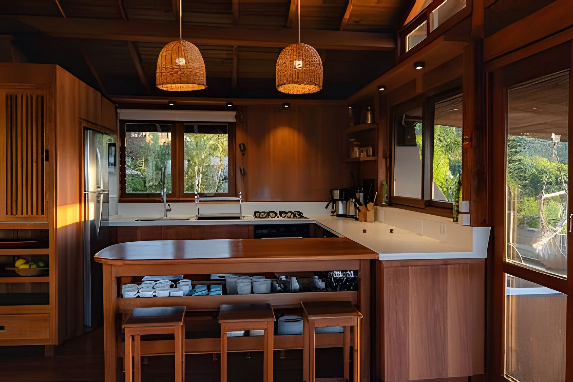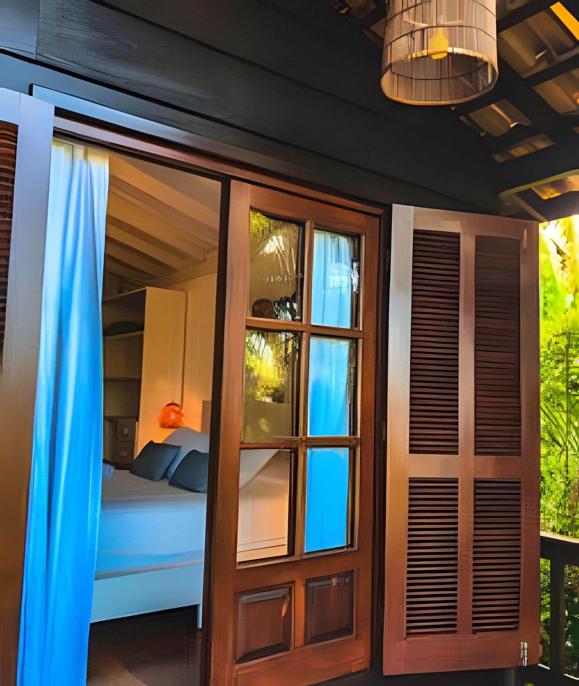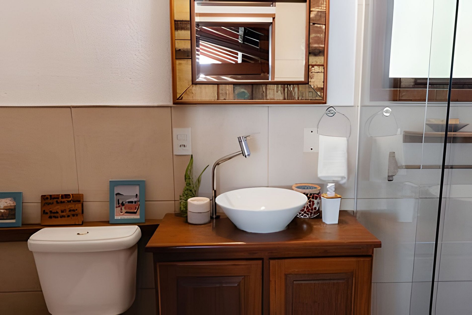 Buda da Lagoa offers easy and direct access to the beach through a trail that goes around Lagoa do Meio, providing a peaceful walk surrounded by nature. The trail leads to the beach in just 3 minutes, with beautiful scenery along the way. To reach the downtown area of Praia do Rosa or the house, you need to go down and up a hill on a stone-paved road, which is typical of the region. This road is rustic and narrow, just like the others in the area, and the walk to the downtown area takes about 10 minutes. In the downtown area, you will find bars, restaurants, and markets, making the location of the house ideal for those who want to enjoy the region without needing to use a car during their stay.