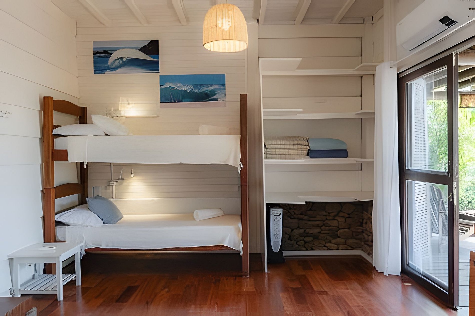 Buda da Lagoa consists of two houses, Buda 1 and Buda 2, located in the best area of Praia do Rosa, just 100 meters from the beach and the central lagoon, and 400 meters from the town center. Both houses have three bedrooms and two bathrooms on the lower floor: - Master suite: queen bed, private bathroom, air conditioning (hot/cold), and sea view. - Second bedroom: queen bed and air conditioning (hot/cold). - Third bedroom: four single beds (bunk beds), air conditioning (hot/cold), and sea view. The arrangement can be modified to add a double bed. The upper floor includes: - Equipped kitchen. - Living room and TV area. - Third bathroom. - Large decks with grill and amazing sea views. Included services: - Cleaning service five times per week. - High-quality bed linens and towels (100% cotton). - 600 Mbps fiber optic Wi-Fi internet. - Samsung 4K Smart TV with satellite channels. - Bluetooth sound system. - Parking for two cars per house. - Beach chairs and umbrella. - Washer and dryer. Additional services: - Breakfast. - Private chef. - Massages and airport transportation. The entire property is fenced and has outdoor security cameras. Pets are welcome.