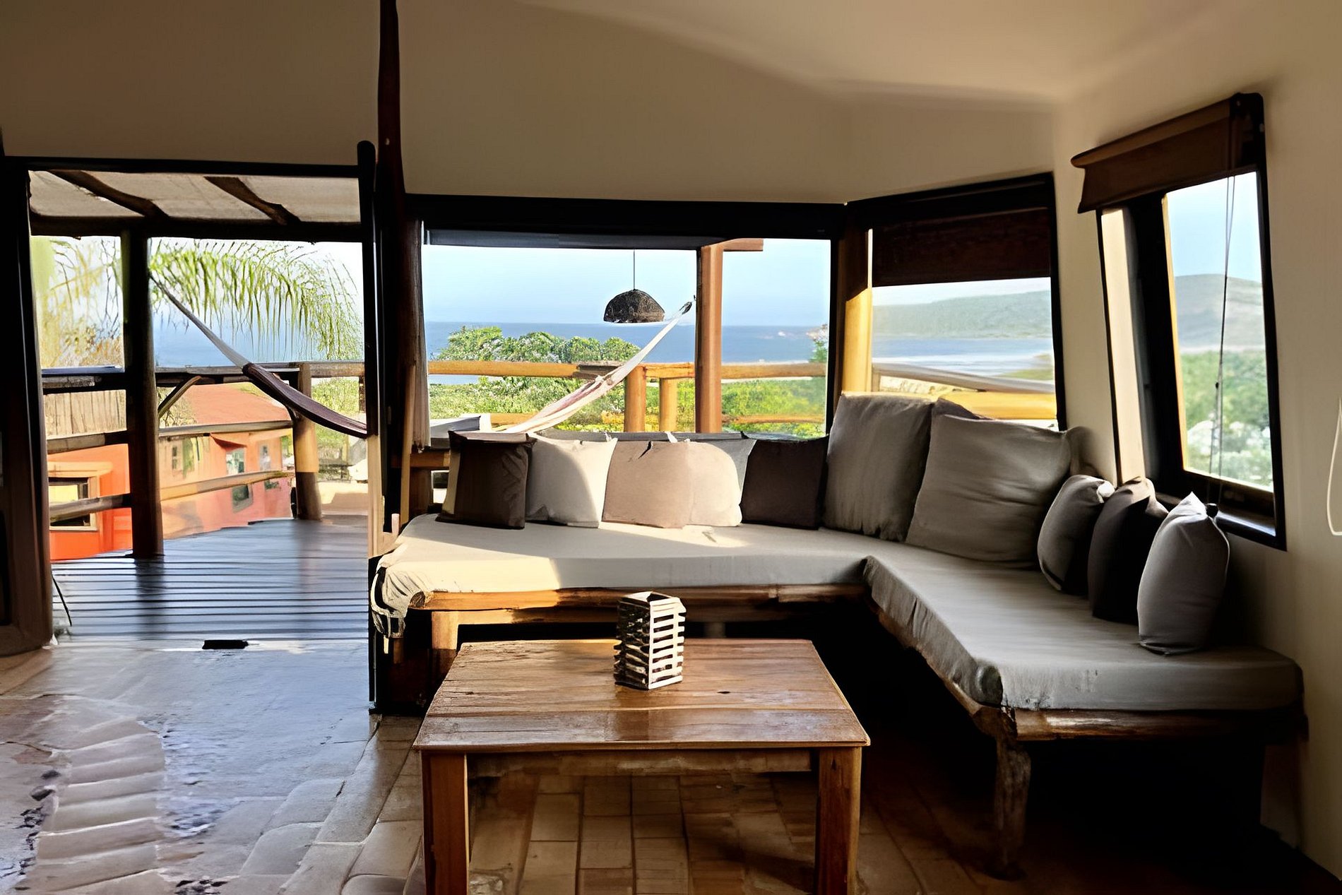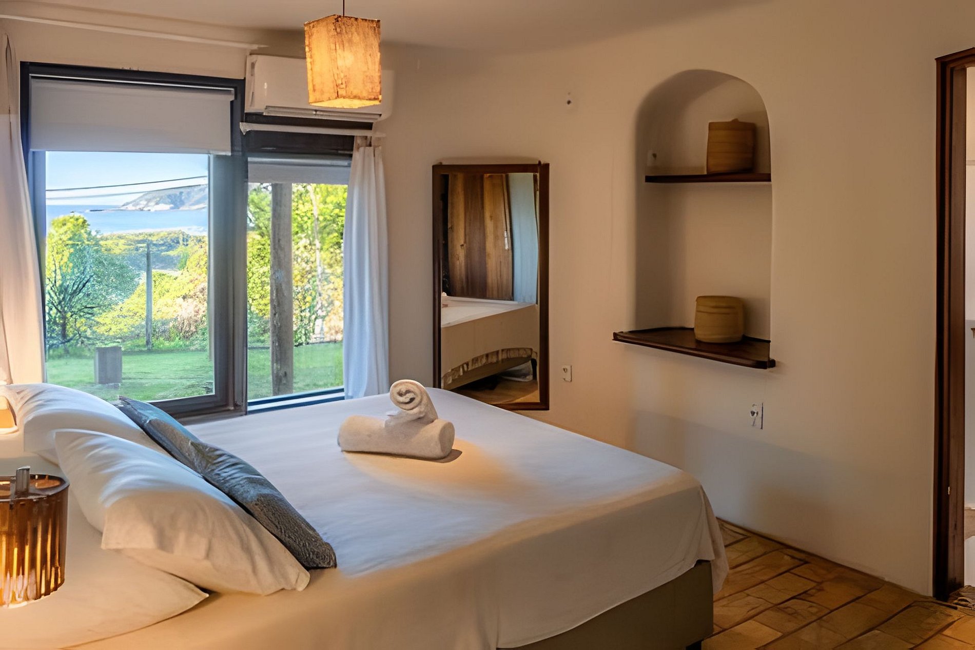 Seiva da Lagoa 2 – Refúgio ecológico a 75m da praia e 500m do centrinho. Casa sustentável em um terreno de 3000 m², cercada pela natureza, com vista para o mar e a Lagoa do Meio. Acomoda até 6 pessoas com 2 quartos e 2 banheiros, cozinha completa, deck amplo com churrasqueira, Wi-Fi de alta velocidade e ar-condicionado. O terreno abriga duas casas iguais, alugadas individualmente. Desfrute de um ambiente exclusivo e tranquilo, com acesso direto à lagoa.