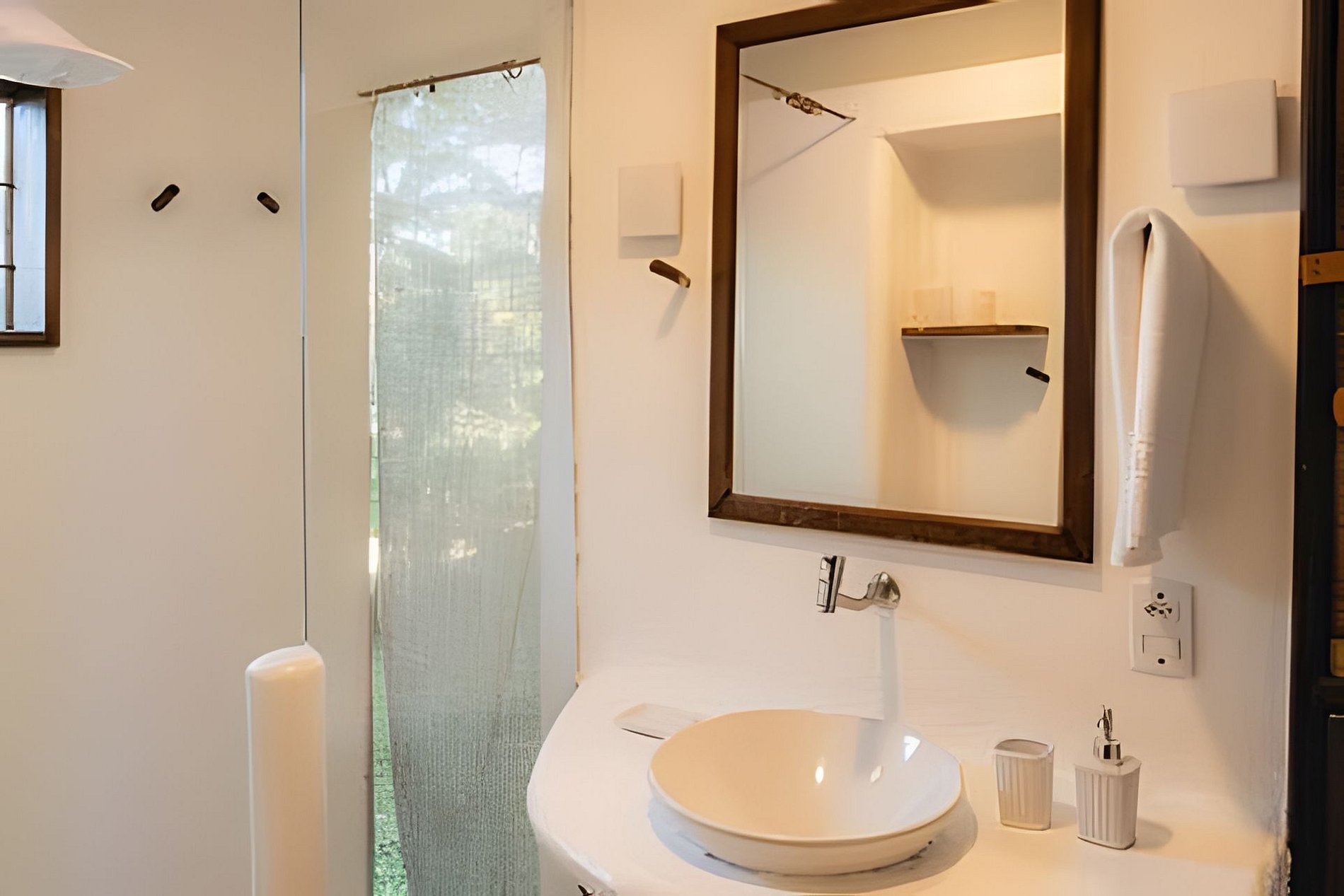 Seiva da Lagoa 2 – Refúgio ecológico a 75m da praia e 500m do centrinho. Casa sustentável em um terreno de 3000 m², cercada pela natureza, com vista para o mar e a Lagoa do Meio. Acomoda até 6 pessoas com 2 quartos e 2 banheiros, cozinha completa, deck amplo com churrasqueira, Wi-Fi de alta velocidade e ar-condicionado. O terreno abriga duas casas iguais, alugadas individualmente. Desfrute de um ambiente exclusivo e tranquilo, com acesso direto à lagoa. Seiva da Lagoa 2 – Eco Casa em Praia do Rosa Localização privilegiada: Situada a apenas 75 metros da praia e 500 metros do centrinho, Seiva da Lagoa oferece uma experiência única em contato com a natureza, com vistas deslumbrantes para o mar e a Lagoa do Meio. Distribuição da casa: Planta Baixa: - Suíte principal: Cama queen, ar-condicionado, cofre e banheiro privativo. - Segundo quarto: 4 camas individuais (2 beliches) e ar-condicionado. - Banheiro adicional. Planta Alta: - Cozinha completa com churrasqueira interna. - Sala de estar integrada - Deck amplo com churrasqueira externa e vista para o mar Comodidades e Serviços: - Wi-Fi de alta velocidade (500MB) - Roupas de cama e toalhas de alta qualidade. - Ar-condicionado em todos os quartos. - Estacionamento para 1 carro por casa. - Guarda-sol e 4 cadeiras de praia. Acesso exclusivo à Lagoa do Meio, ideal para aproveitar a tranquilidade e beleza natural do local. A Seiva da Lagoa oferece acesso fácil e direto à praia por meio de uma trilha que contorna a Lagoa do Meio, proporcionando uma caminhada tranquila e rodeada de natureza. A trilha leva à praia em apenas 3 minutos, com belos cenários ao longo do caminho. Para acessar o centrinho de Praia do Rosa ou chegar à casa, é necessário descer e subir o morro por uma rua de pedras, típica da região. A rua é rústica e estreita, como as demais ruas de Praia do Rosa, e a caminhada até o centrinho leva cerca de 10 minutos. No centrinho, você encontrará bares, restaurantes e mercados, o que torna a localização da casa excelente para quem deseja curtir a região sem precisar usar o carro durante a estadia. Estamos sempre à disposição dos hóspedes para garantir que sua estadia seja o mais confortável e agradável possível. A interação pode ser feita pessoalmente ou via mensagens durante todo o período de hospedagem. Nosso objetivo é oferecer assistência sempre que necessário e garantir que cada hóspede aproveite ao máximo a experiência em Seiva da Lagoa, com total privacidade e tranquilidade, em harmonia com a natureza ao redor.